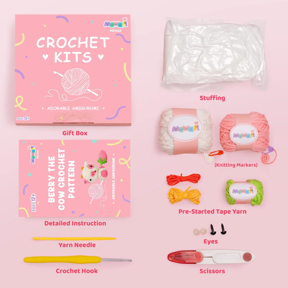 MeWaii® Crochet 3Pcs Highland Cattle Crochet Kit for Beginners with Easy Peasy Yarn