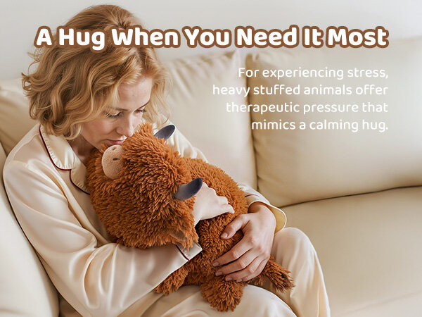 • 4.0 Lbs Weighted Stuffed Animals – This 4-pound highland cow stuffed animal measures 23"x11.8"x6.7", offering gravity sensory stimulation and the calming feel of a real hug to relieve stress and tension.