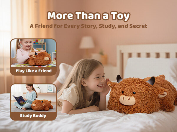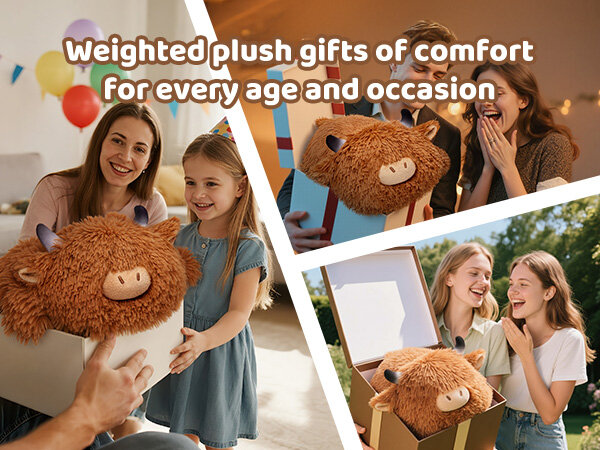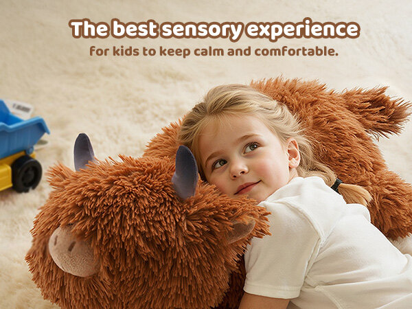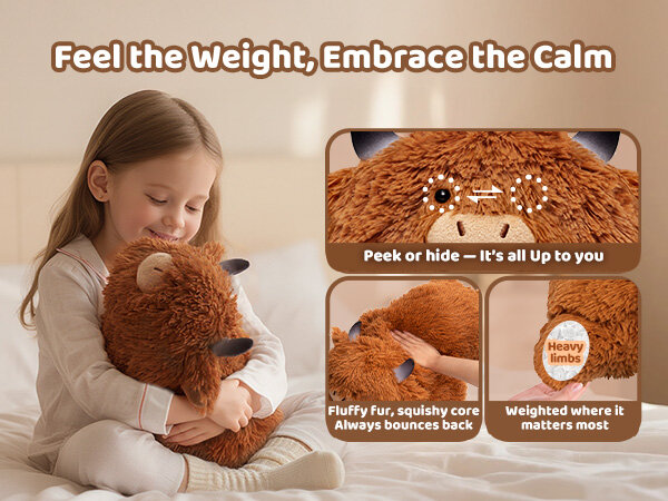 • Weighted Calm Companion - 4.0 lbs weighted stuffed animal is filled with enough PE beads to provide people the feeling of embrace and a sense of security to keep you calm and comfortable. It can be with you while sleeping, reading, working, etc. At bedtime, the adorable highland cow plush also can be the weighted comforter with children as companions to replace mother-childhood and make children feel secure all night long.