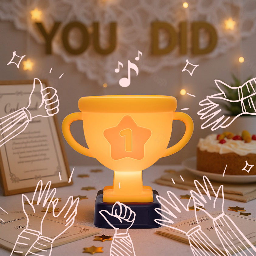 Perfect for study corners or display shelves, this glowing trophy adds a touch of encouragement and celebration to any day.